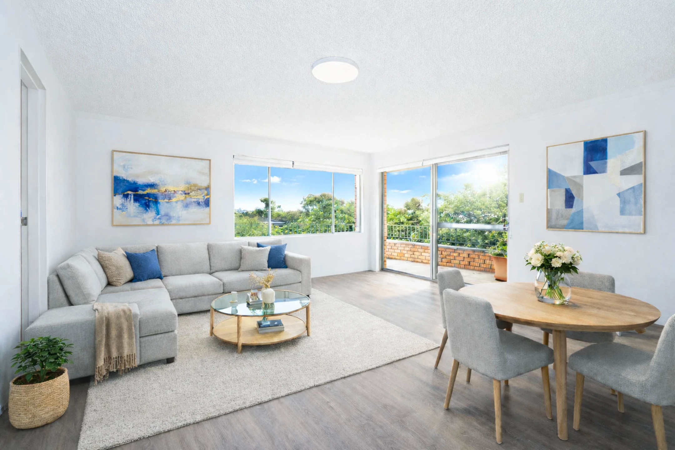 | Large sunny living and dining area