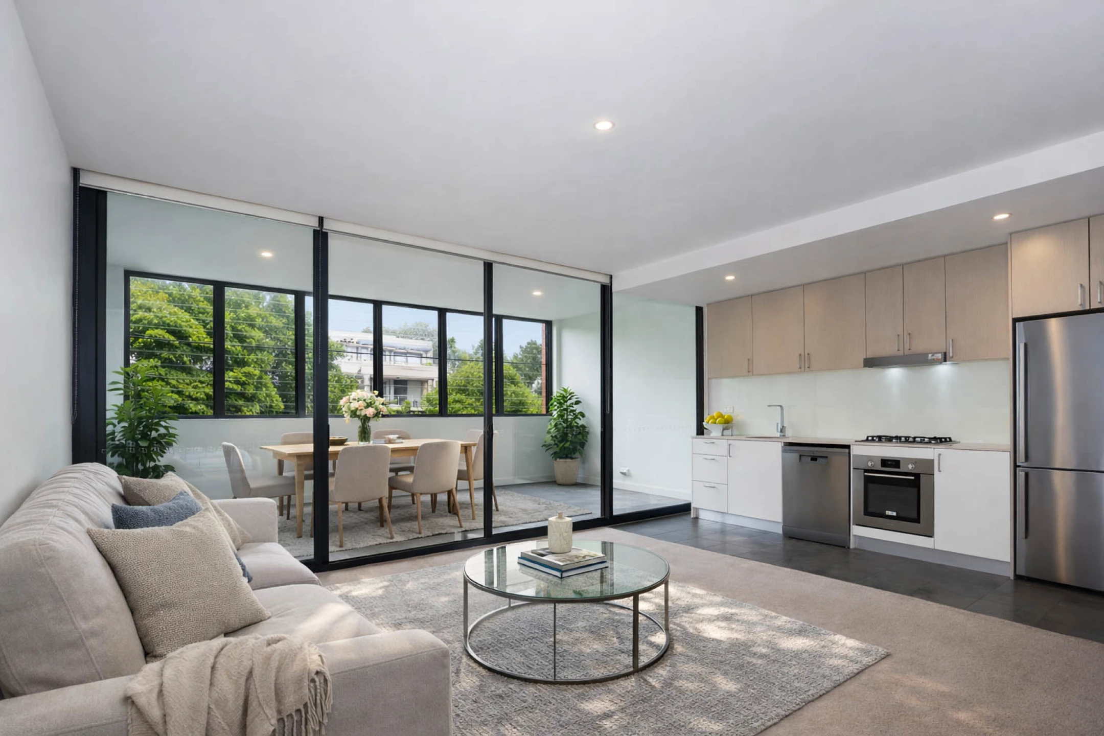 | Expansive bright living & dining area